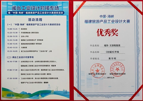 “龙福红手绳”作品荣获“中国·海峡”旅游产品工业设计大赛优秀奖。