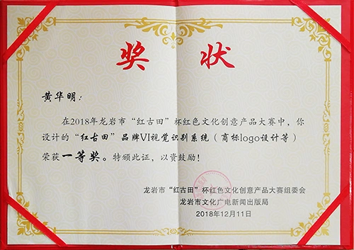 在龙岩市“红古田”杯红色文化创意产品大赛中荣获一等奖。