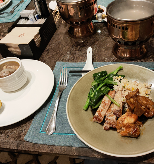 自助台上的珍馐满目琳琅,冷盘精致悦目,刺身纹理分明,蘸一抹特制酱汁,鲜爽直抵舌尖;热菜香气醇厚,肉质酥烂入味,时蔬青翠欲滴,每一口都是恰到好处的火候与调味;甜点更是精巧雅致,慕斯绵密细腻,挞皮酥脆香甜,甜而不腻的口感叫人回味悠长。